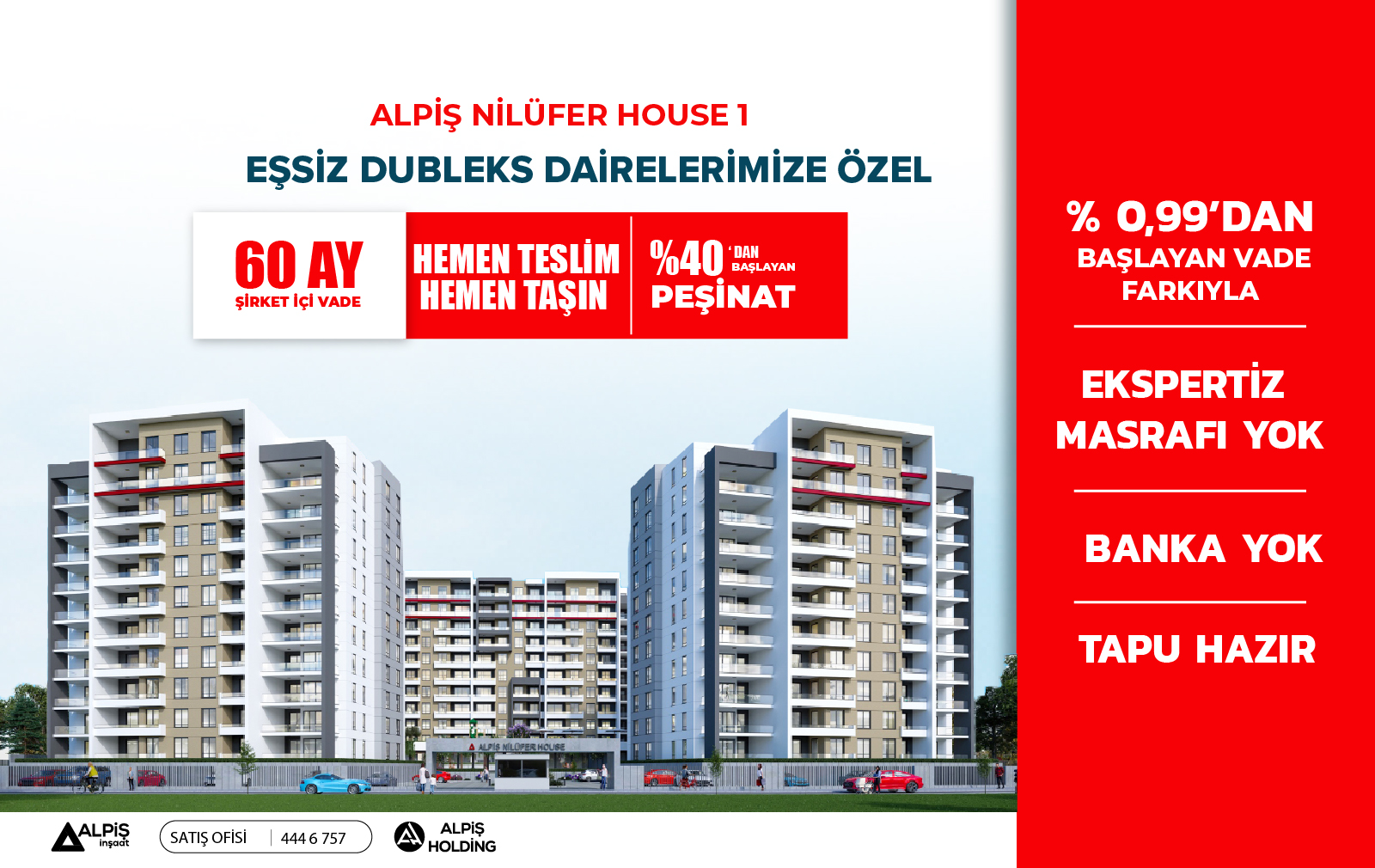 Ev hayatınıza ve sosyal yaşamınıza ayrıcalıklar sunan Alpiş Nilüfer House, bir konutta aradığınız özelliklerden fazlasını sunmak ve farklı mimari tarzıyla sizleri büyülemek için ALPİŞ İNŞAAT güvencesiyle yükseliyor.