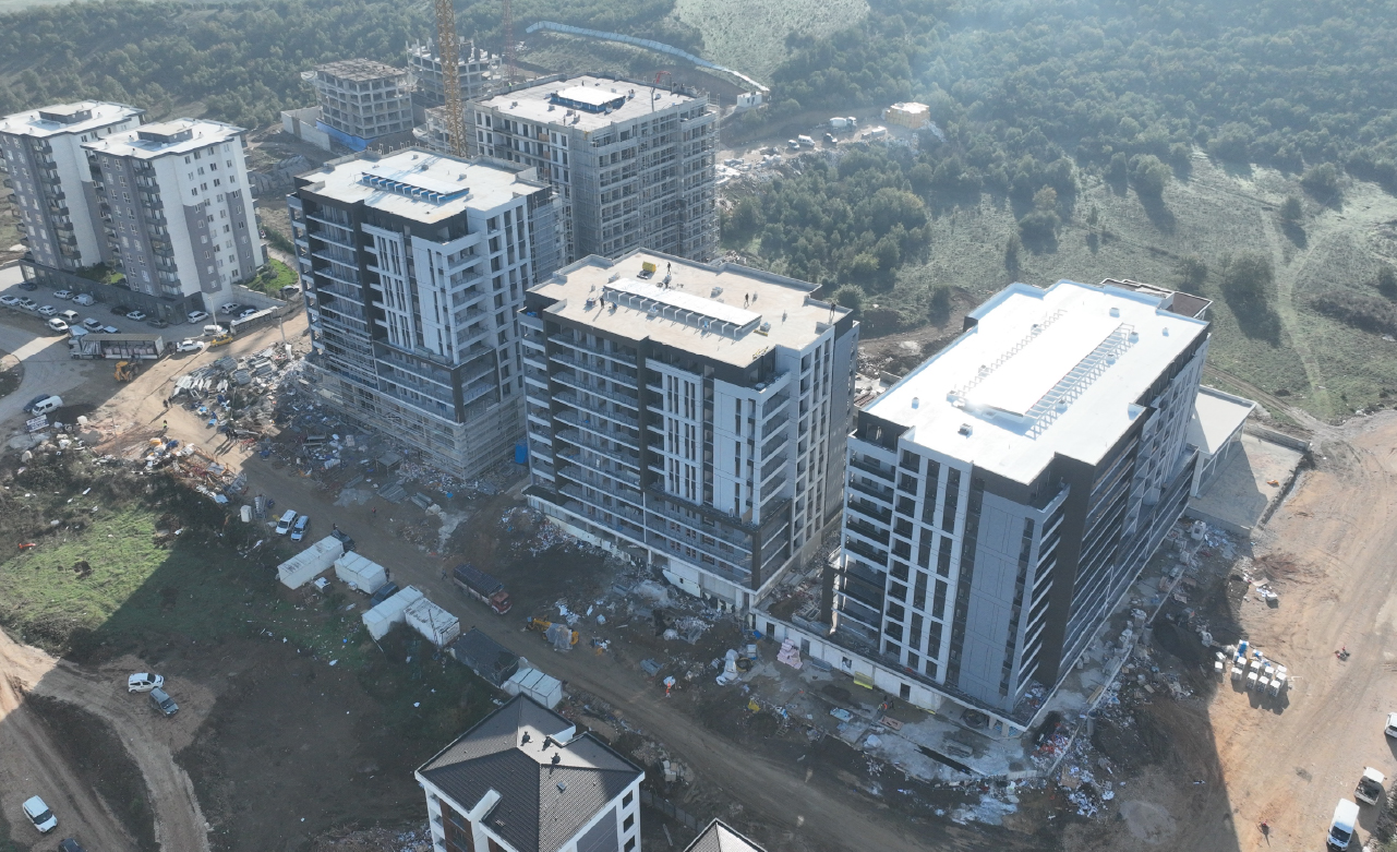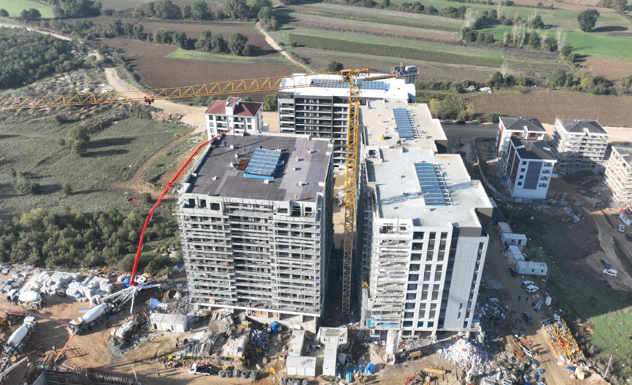 Cephe imalatları D ve C Blok’ta sona ererken, B ve A Blokta sürüyor. Çatı imalatlarında ise finale yaklaşıldı.
