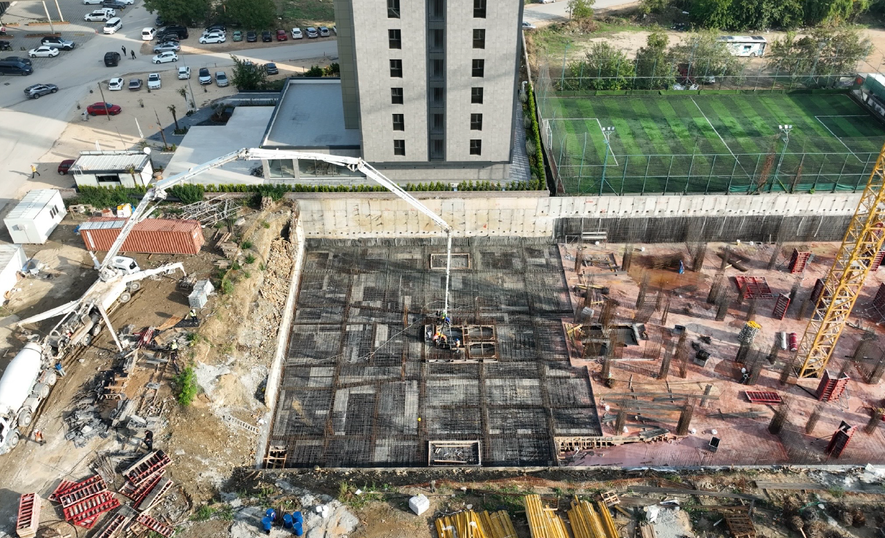 Alpiş İnşaat’ın son projesi Vena Residence’ta dökülen temel betonunun ardından başlayan kolon ve yalıtım imalatları hızlandı.